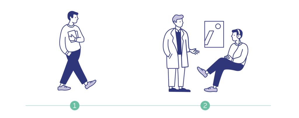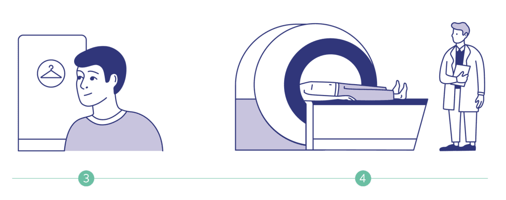 La secrétaire procède à votre accueil en récupérant vos papiers de sécurité sociale, votre ordonnance et le consentement. Une fois votre accueil terminé, vous patientez en salle d’attente le temps qu’un manipulateur vienne vous chercher.